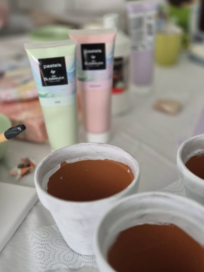 Nog wat hulp nodig? Er zijn altijd voorbeelden aanwezig om inspiratie op te doen. Aan het einde van de workshop heb je kennis gemaakt met de Decopatchtechniek. En je neemt 2 unieke bloempotjes mee naar huis.