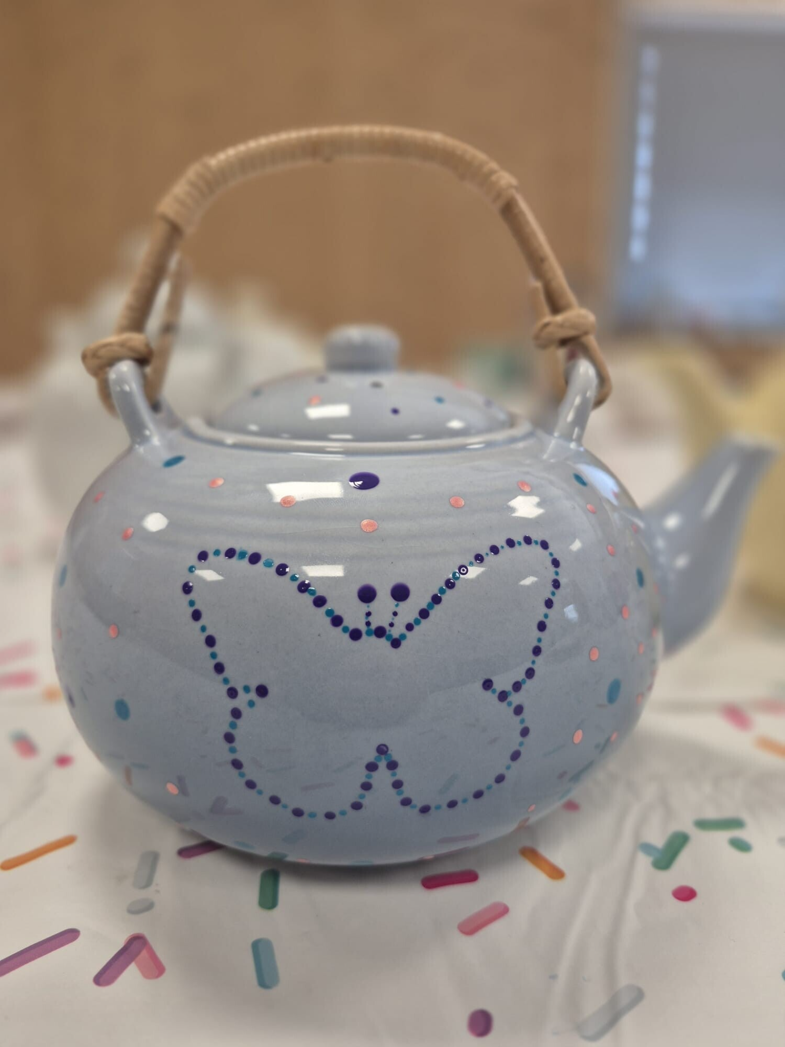 Dit keer gaan we aan de slag met een groter stuk servies, zoals een groot serveerbord, etagère, theepot of vaas. Heb je zelf een stuk servies wat opgefleurd mag worden met een stippenpatroon? Of heb je bij de kringloopwinkel een unieke vondst gedaan wat vraagt om wat extra aandacht? In overleg bepalen we wat jullie in de vervolg workshop gaan 'Stippen'.